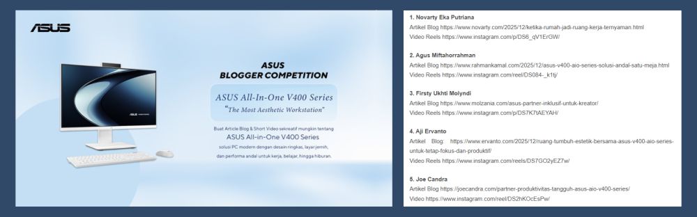 One of the winner and I got a notebook ASUS VivovoBook A407, this is the article.